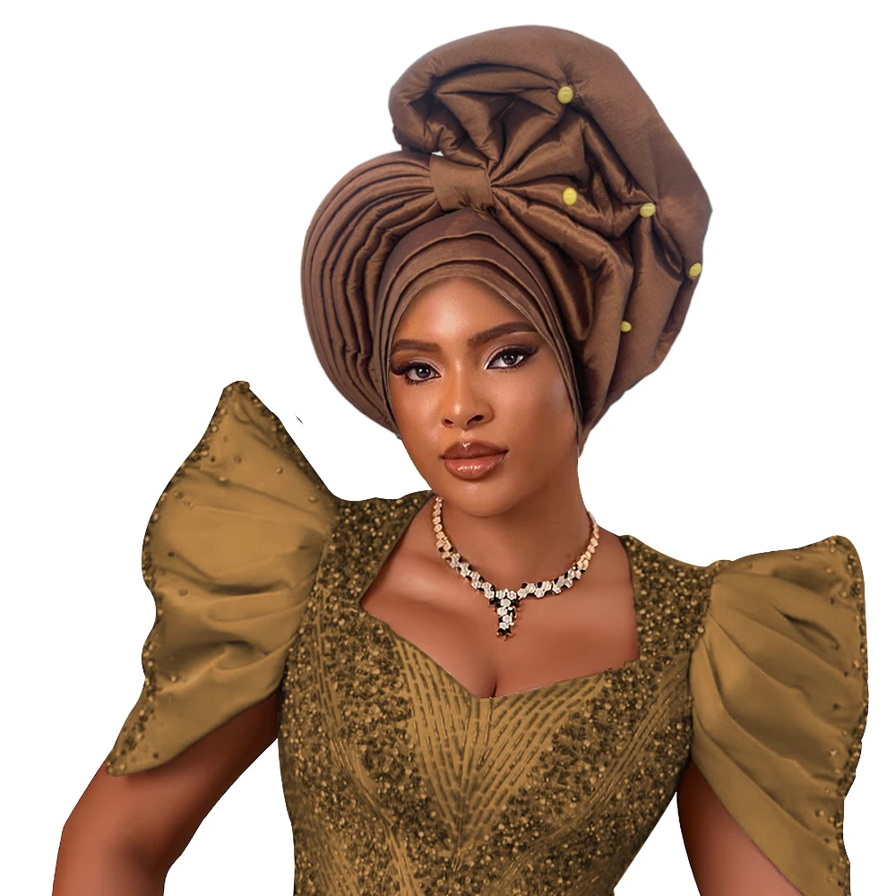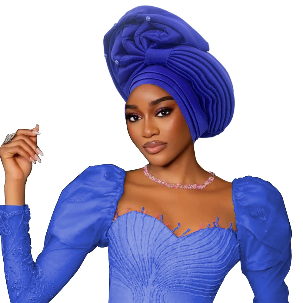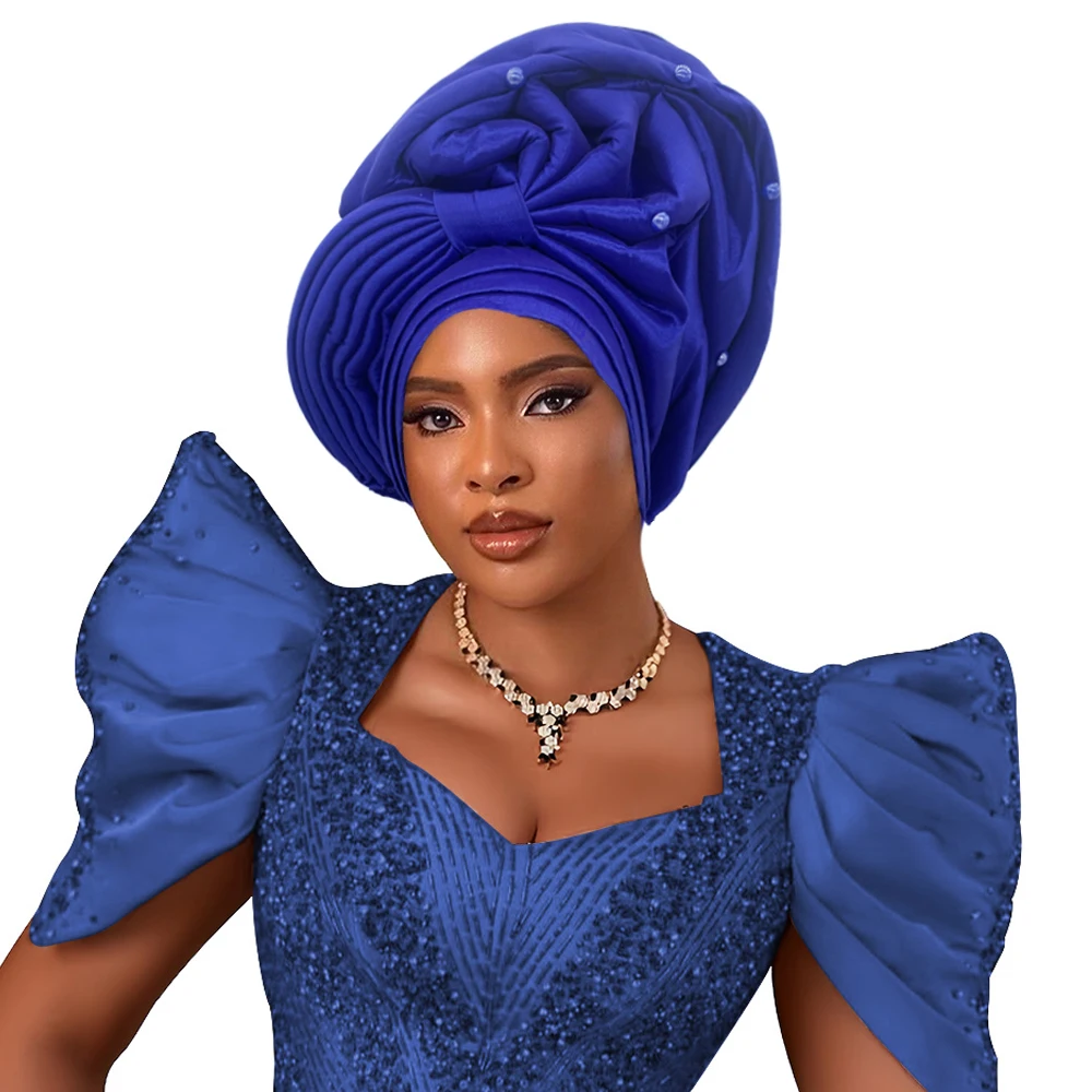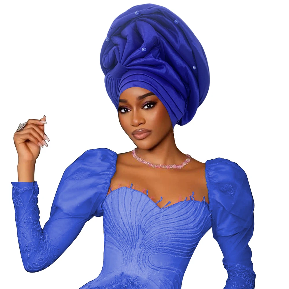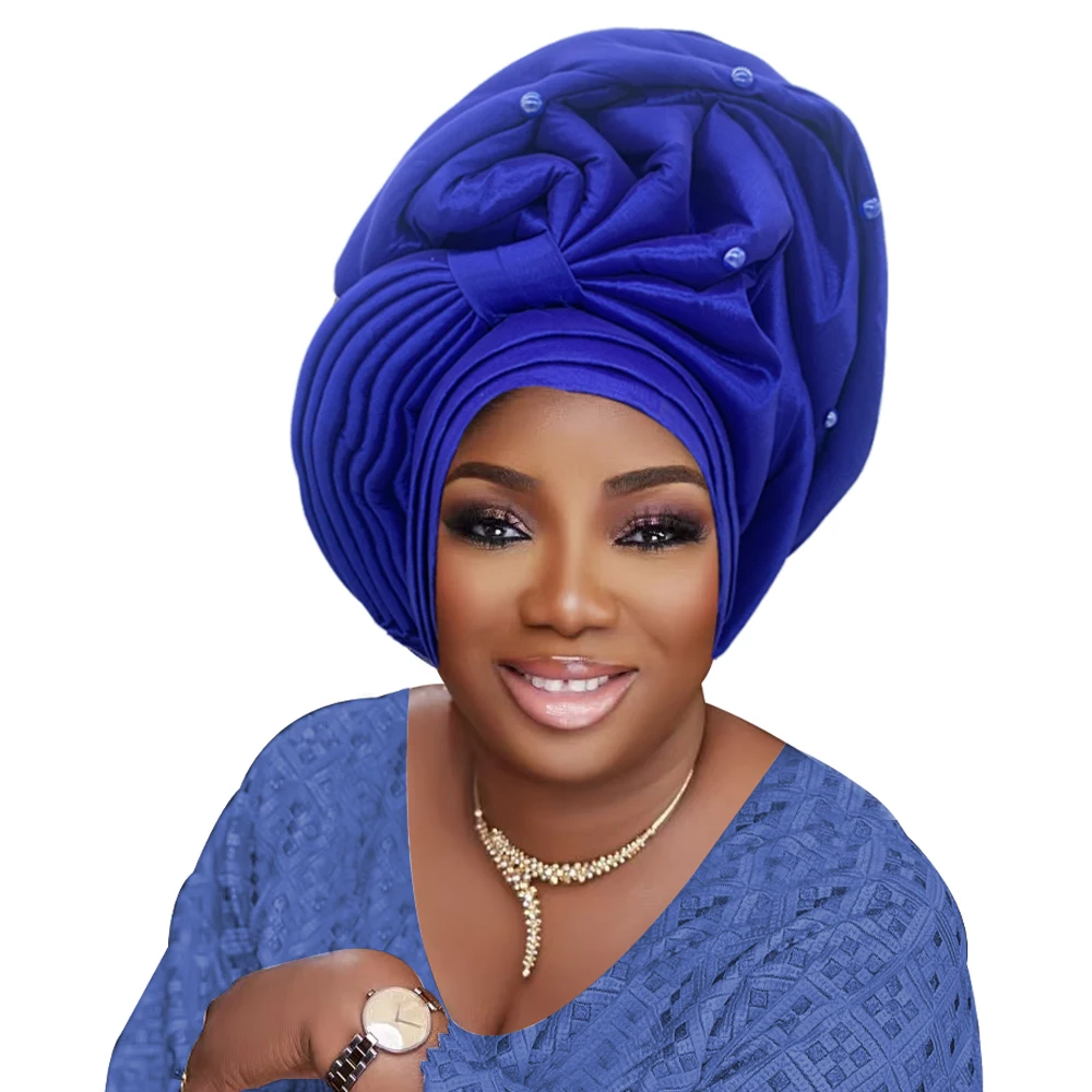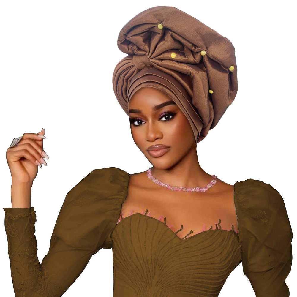 Raw Silk Turban Cap for Women African Female Head Wraps Nigeria Wedding Party Headcover Hat Ready to Wear Head Ties