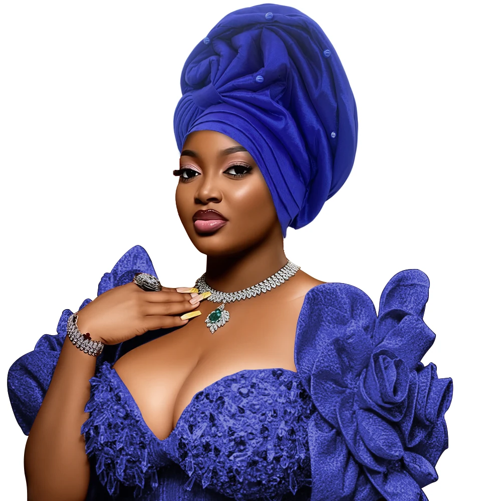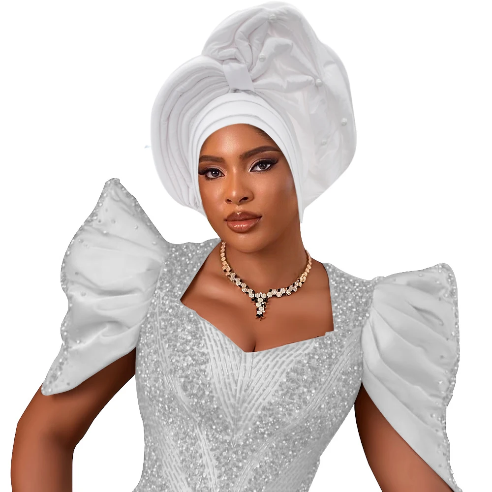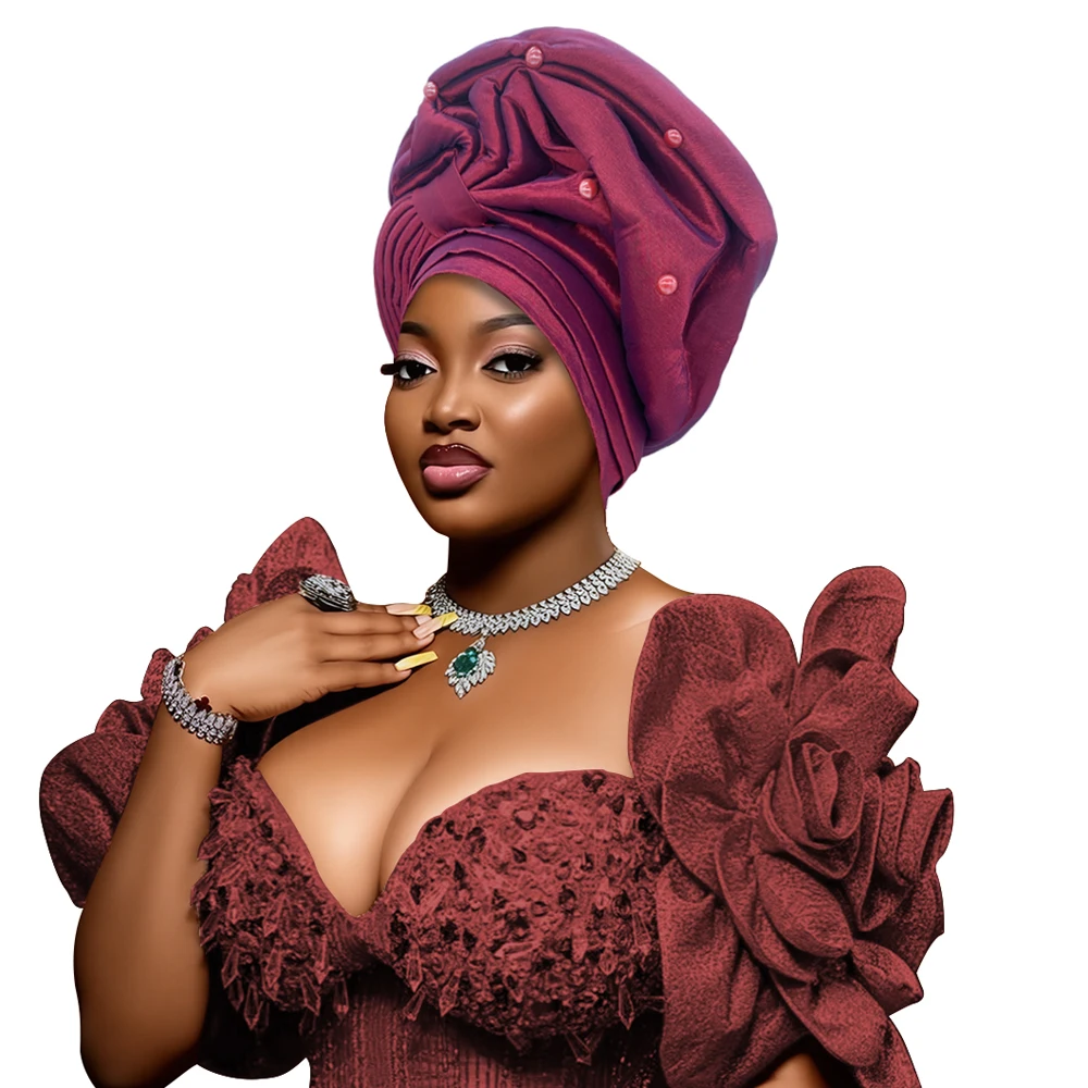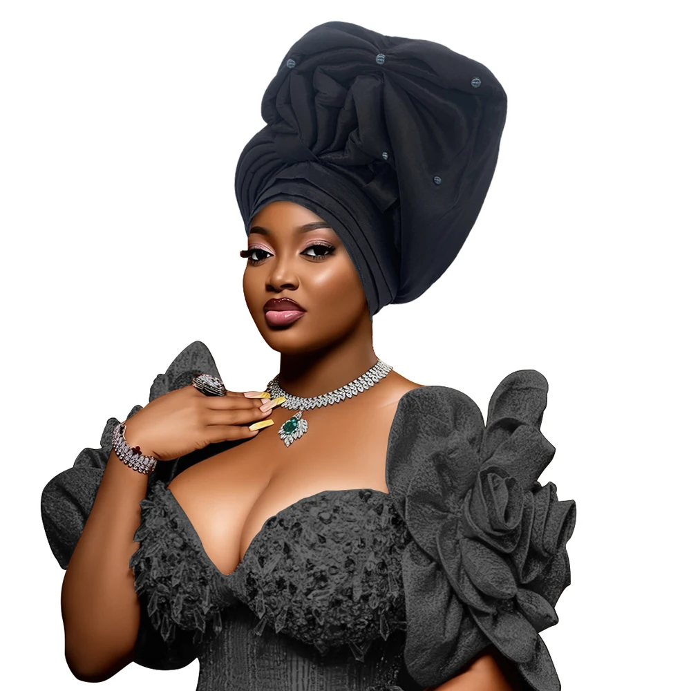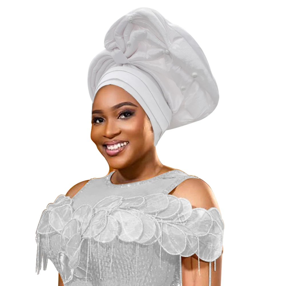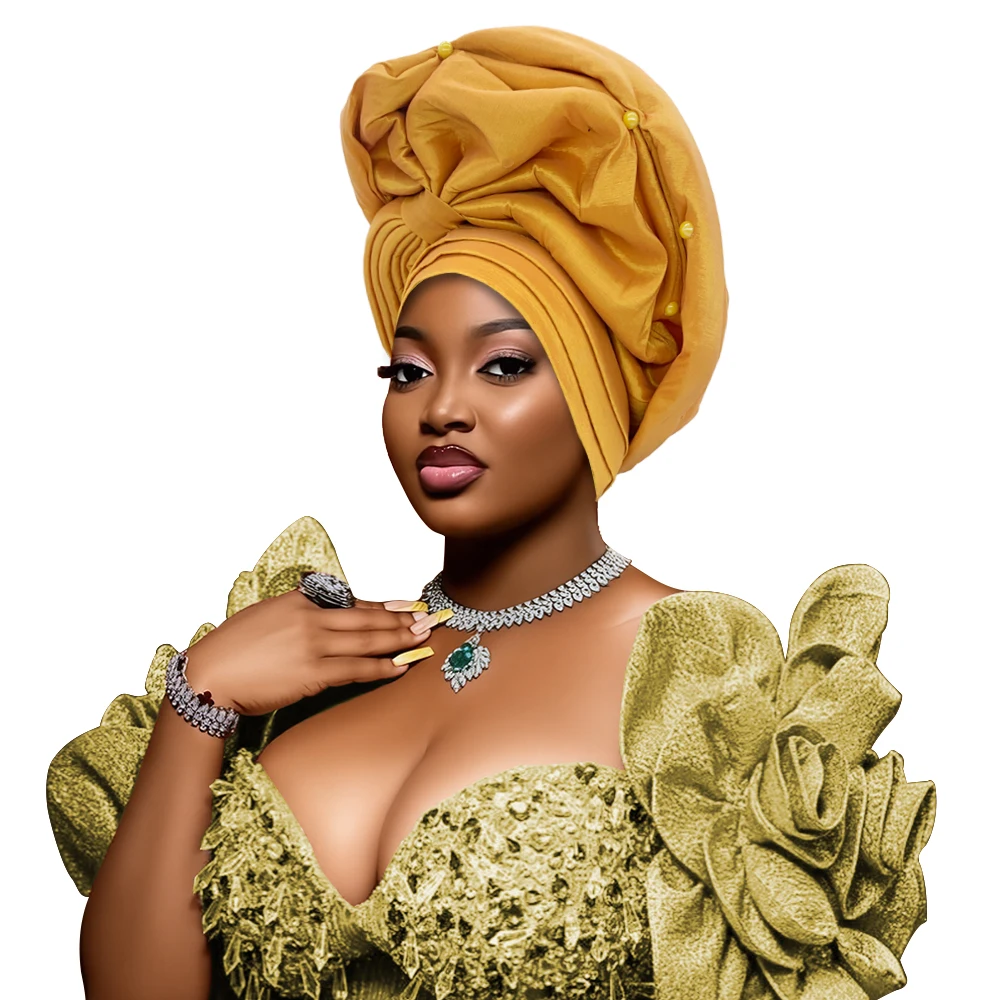 Raw Silk Turban Cap for Women African Female Head Wraps Nigeria Wedding Party Headcover Hat Ready to Wear Head Ties