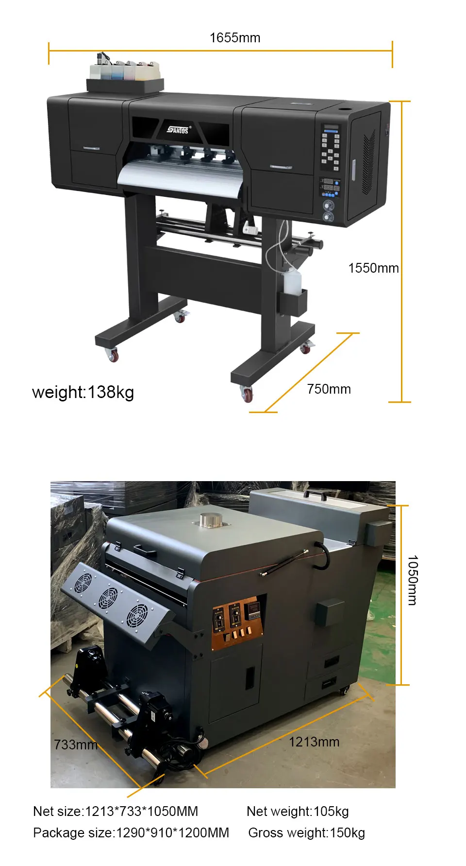 Santos A1 DTF Printer C/M/Y/K/W Color Wide Format DTF Film Printer A1 60 CM DTF Impresora With Powder Shaking Machine