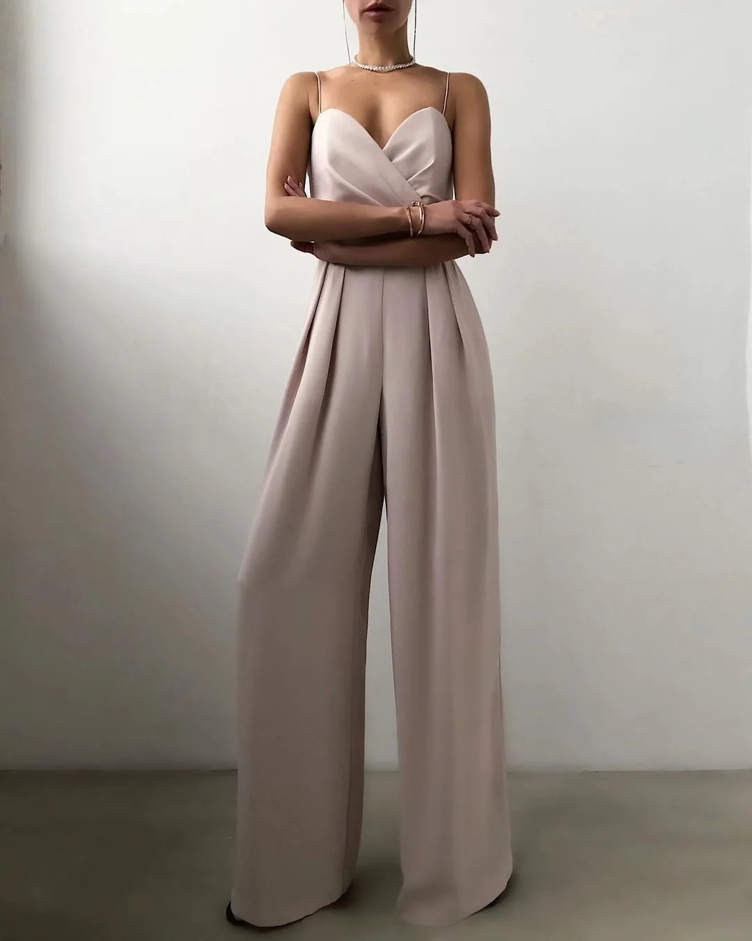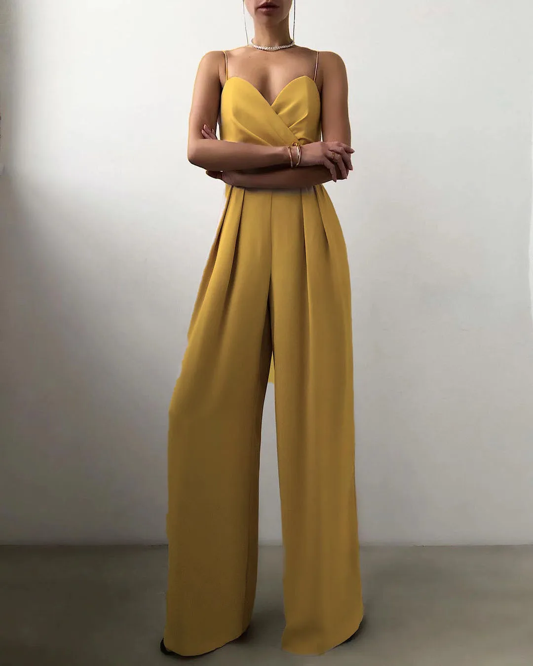 Sleeveless High Waist Jumpsuit Wide Leg Sling Long Pants Romper Spring Summer Casual Outfit Solid Slim V Neck Rompers