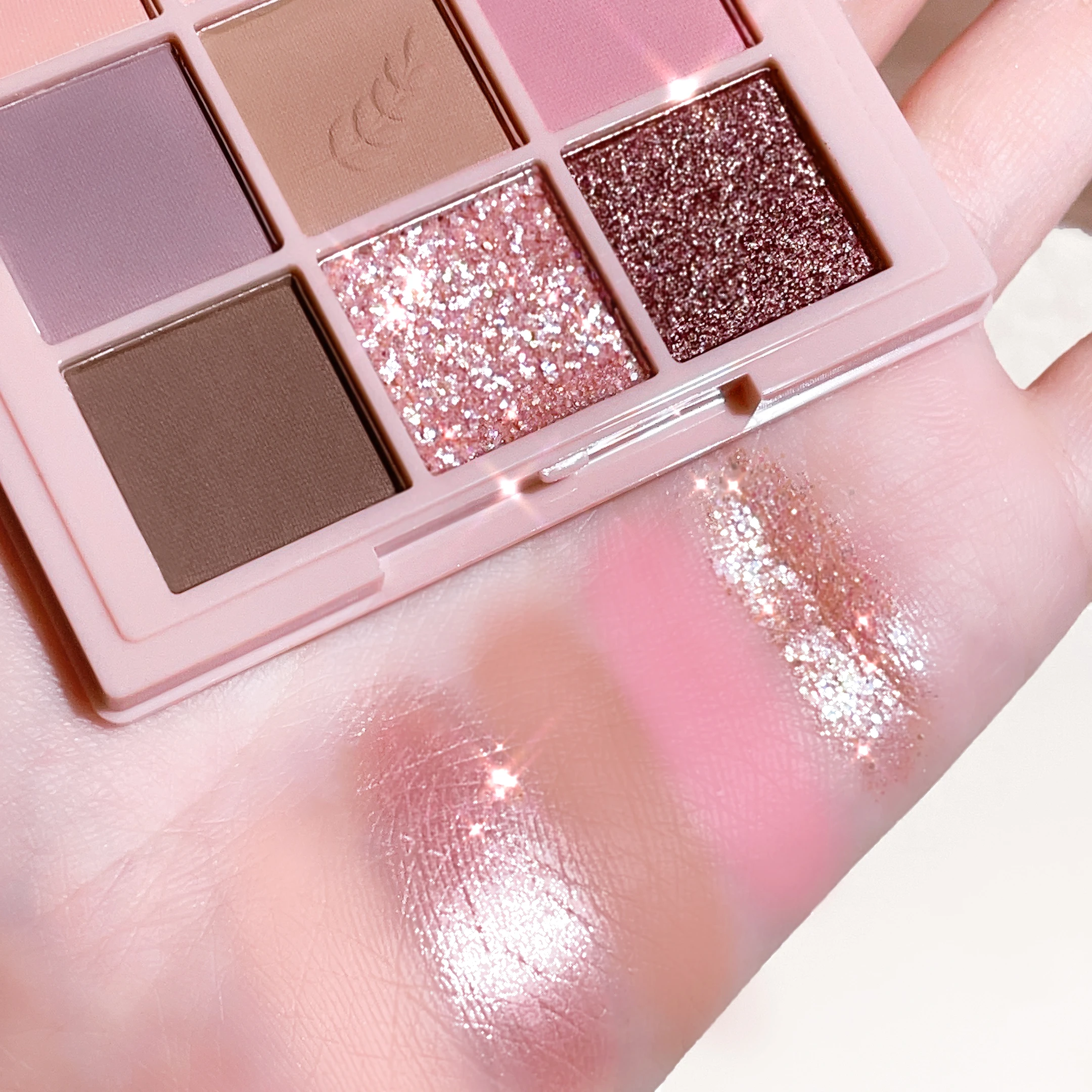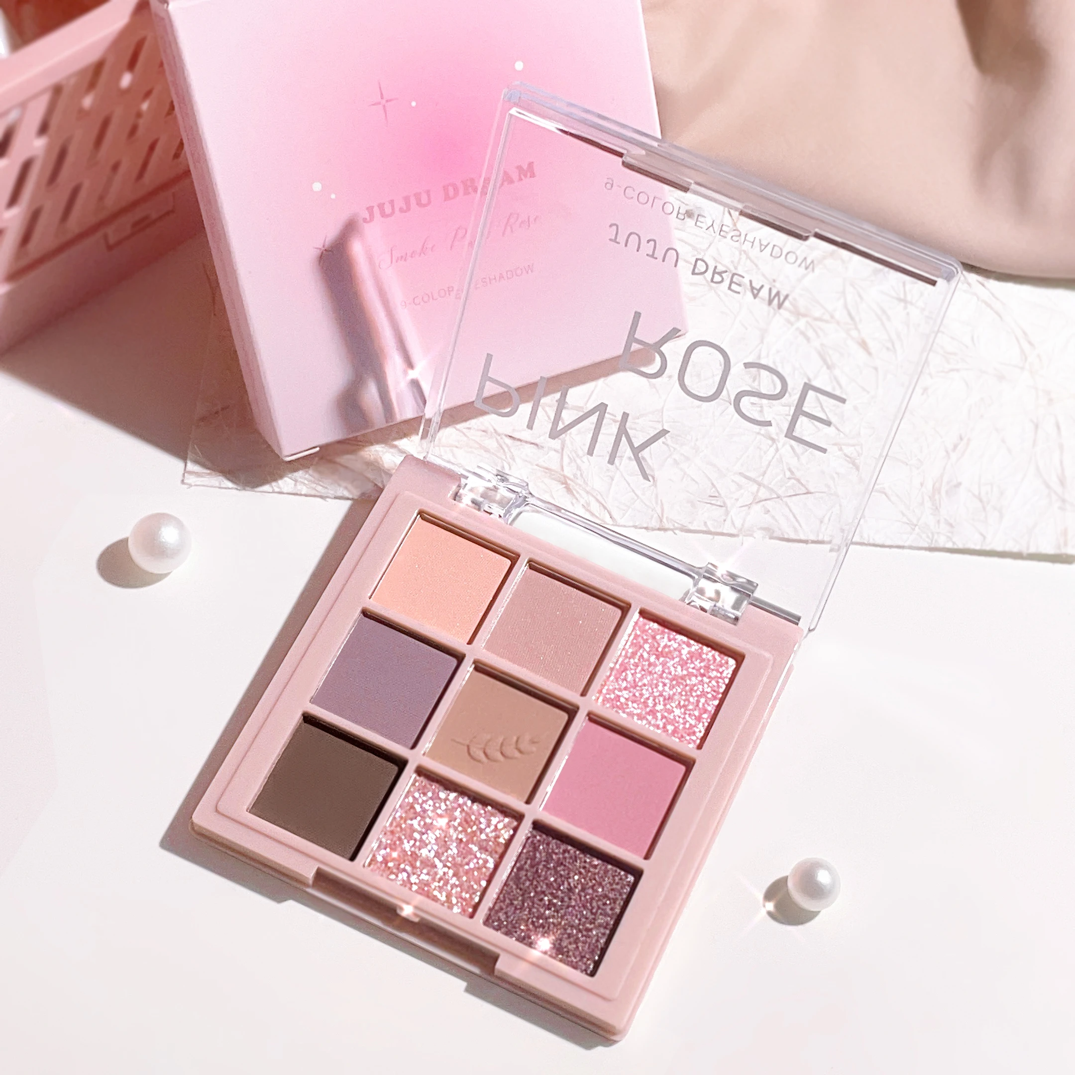 Smoky pink rose nine shades of eyeshadow, grey pink, smoky makeup, matte pearlescent silkworm brightening makeup