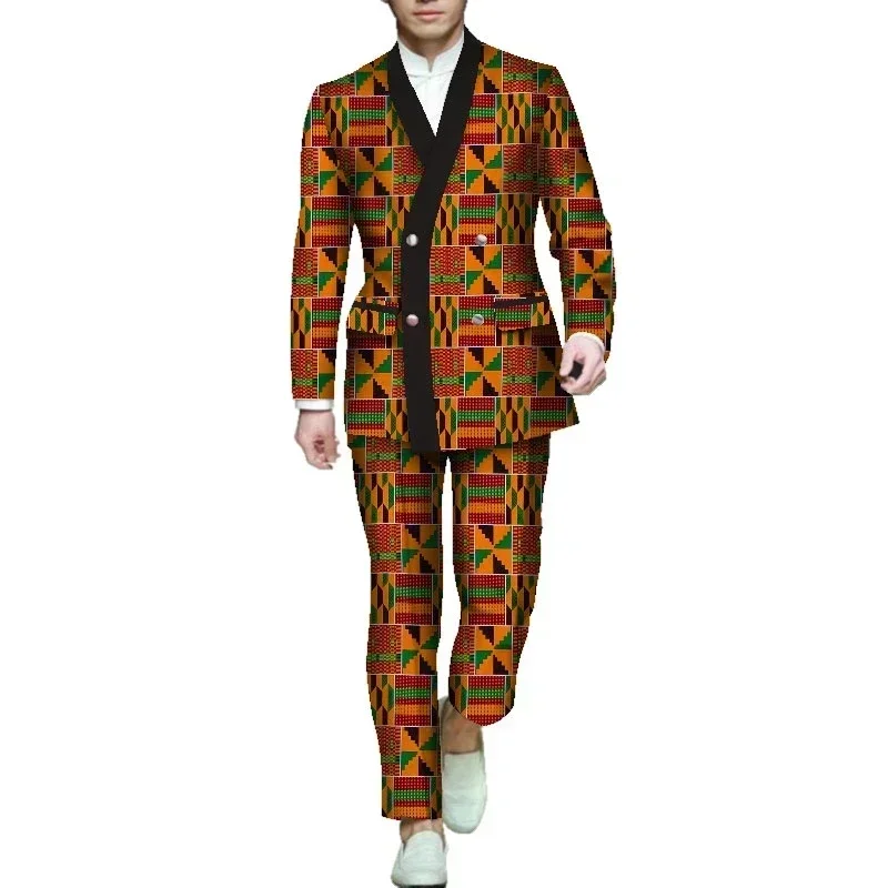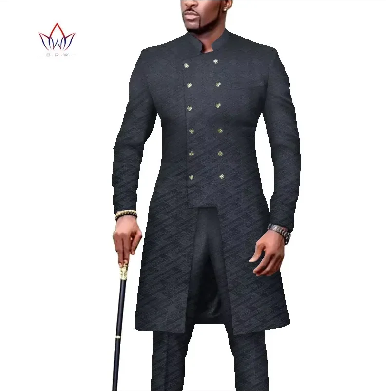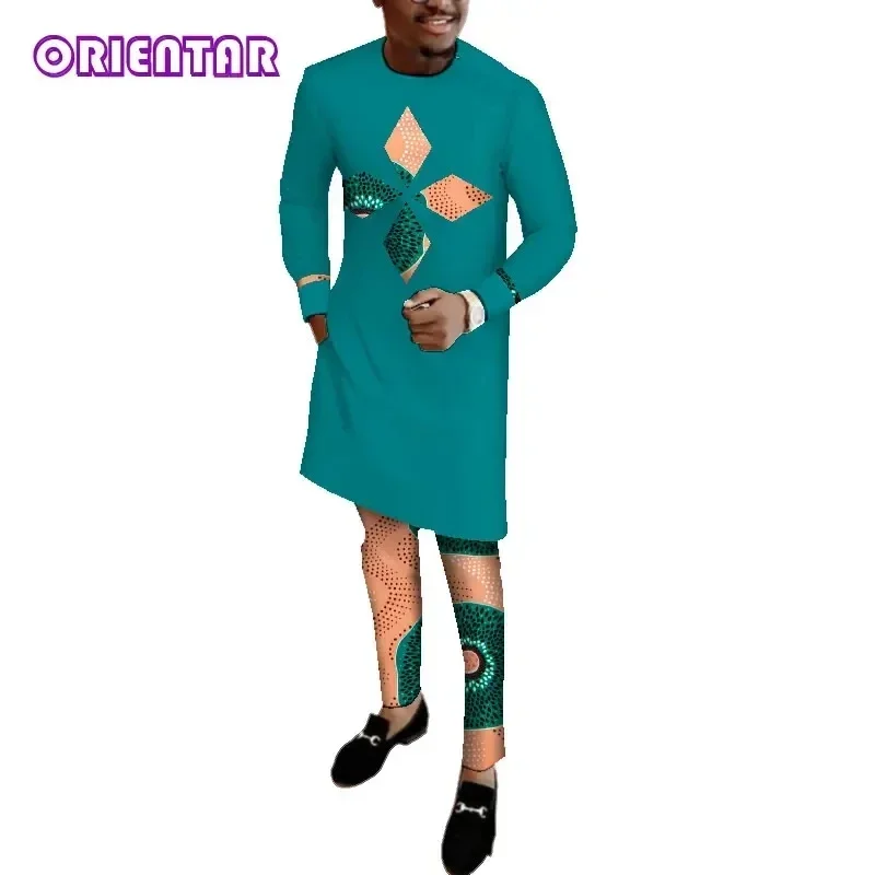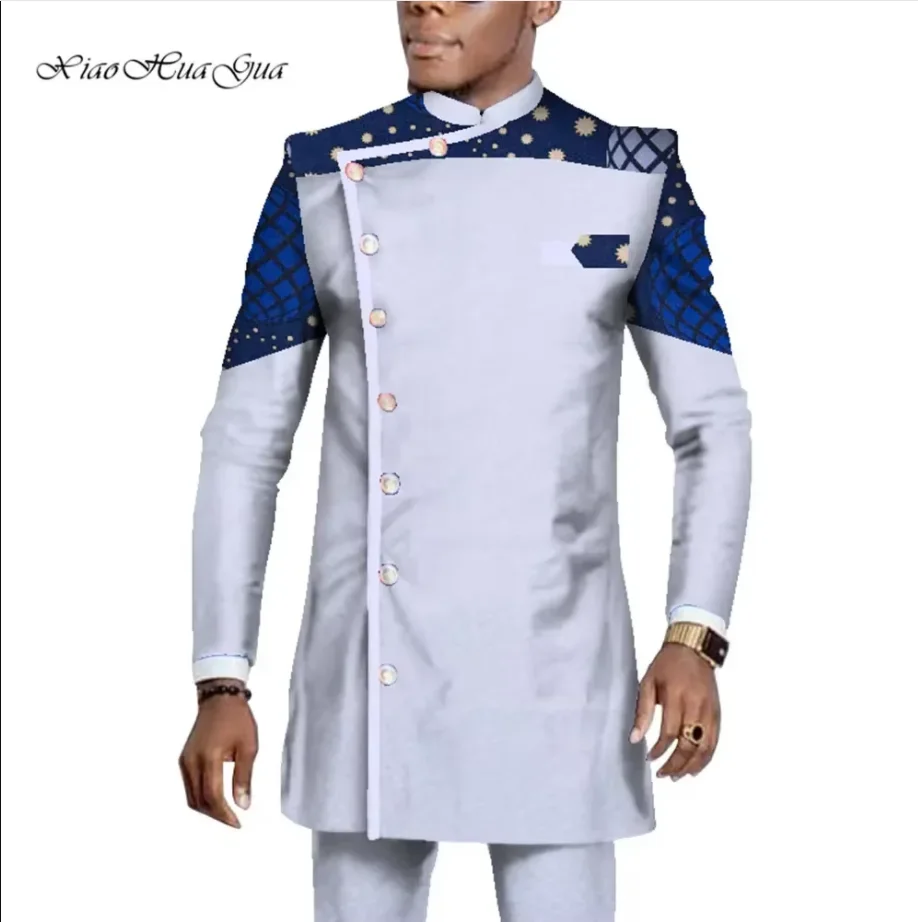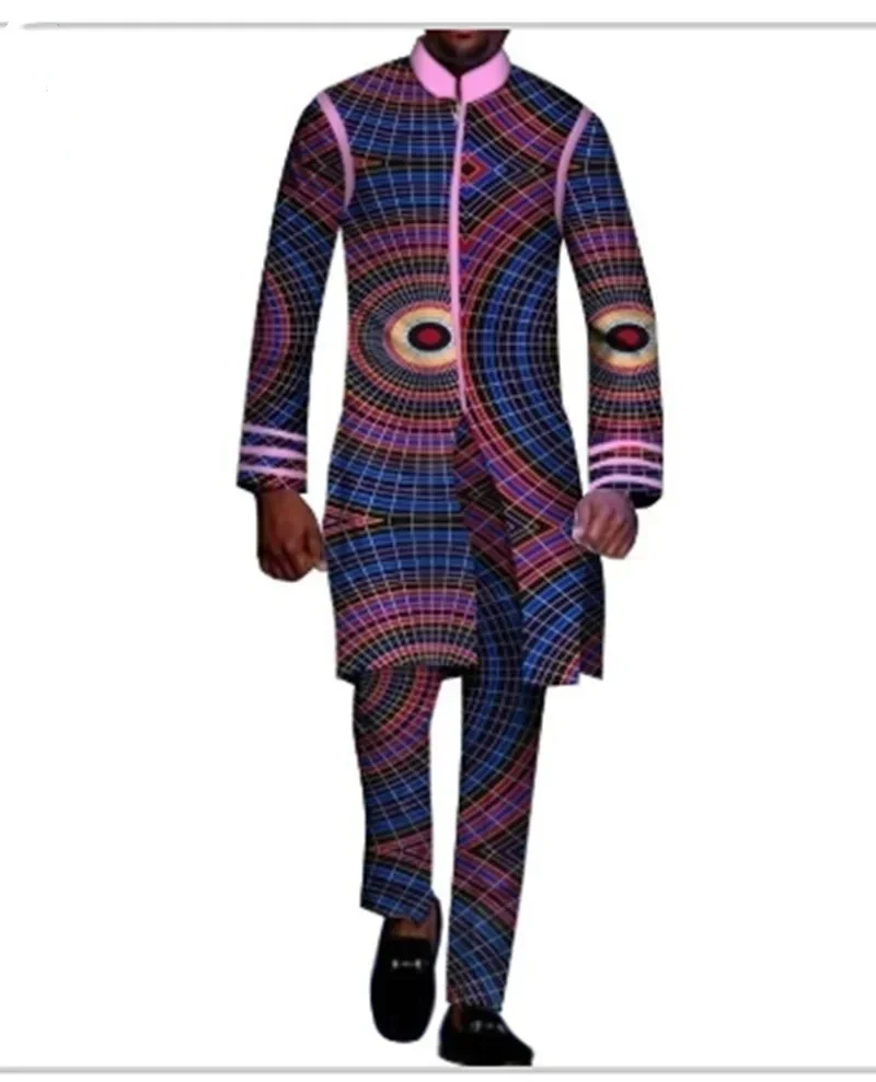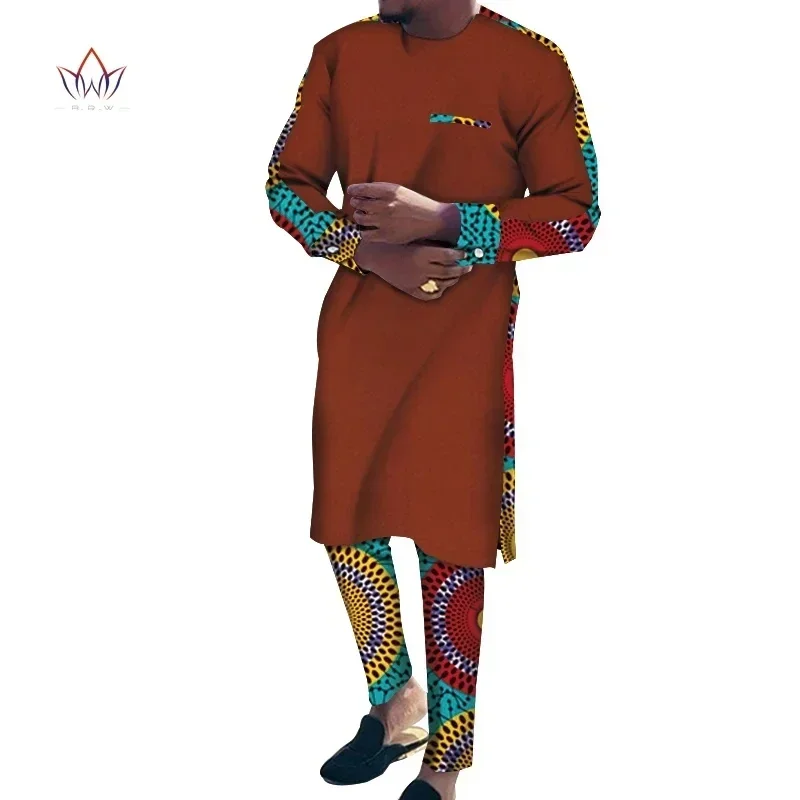 Stock Size African Men Dashiki Clothes Shirt Pants Suit Ankara Long Sleeve Robe Tops Trouser African Men Clothing