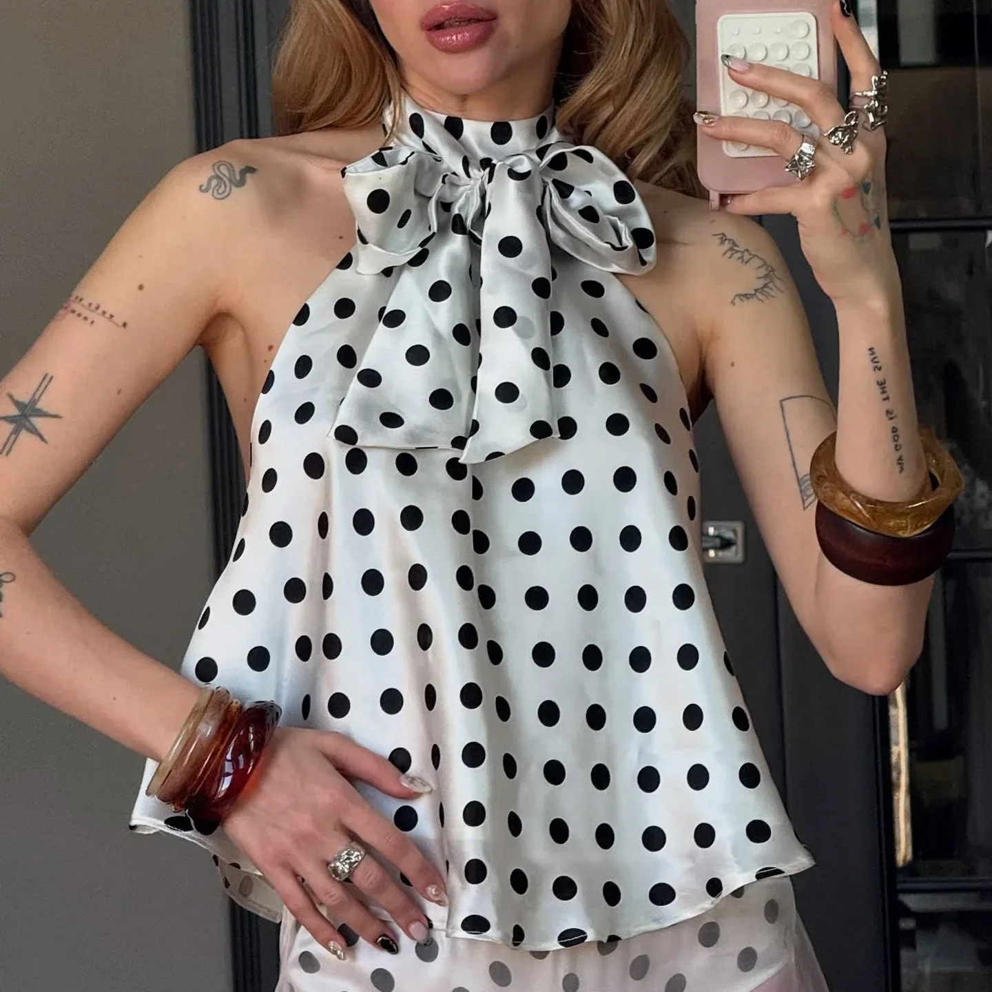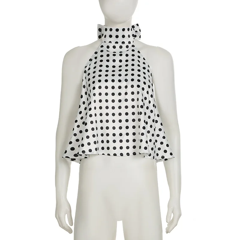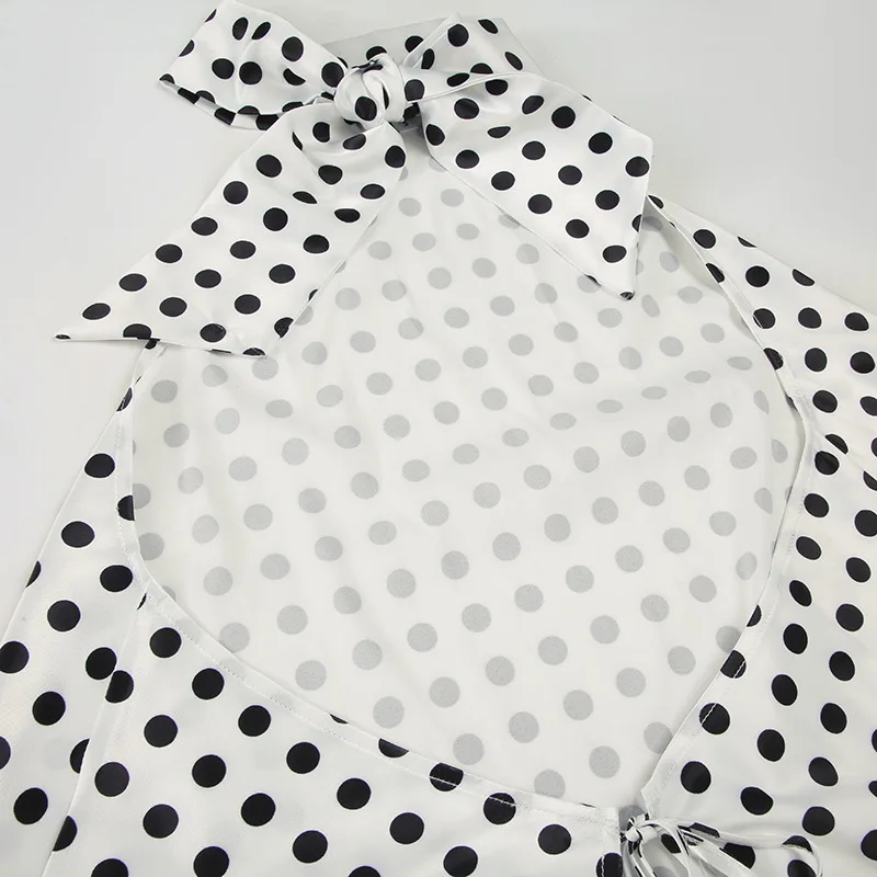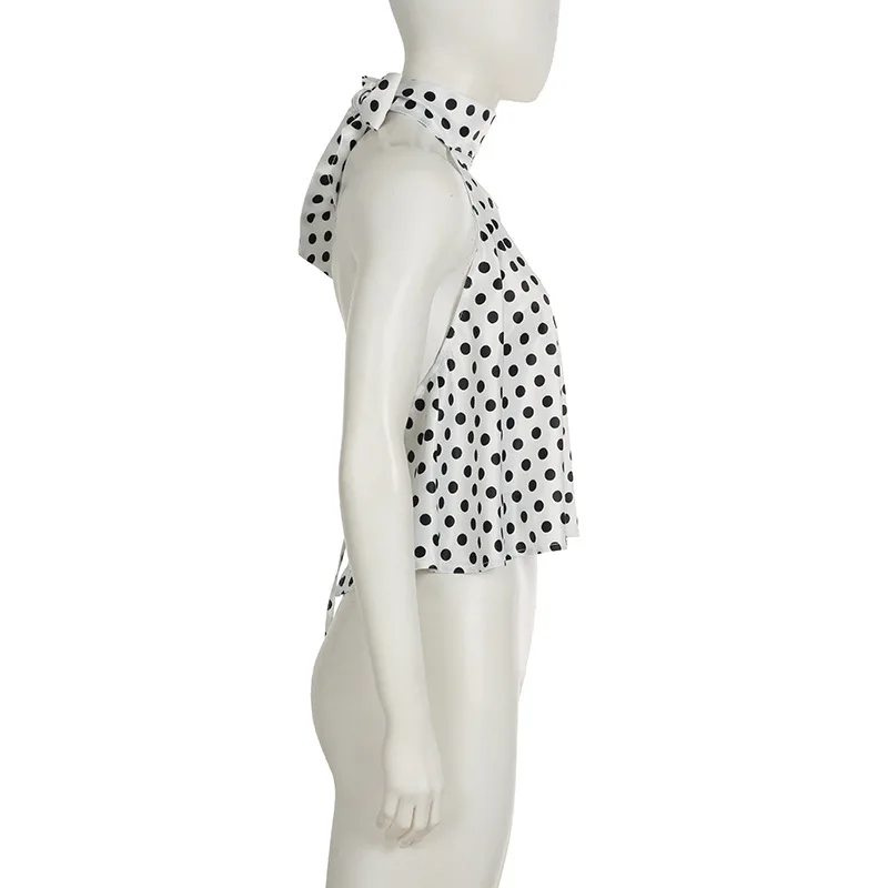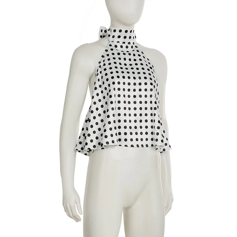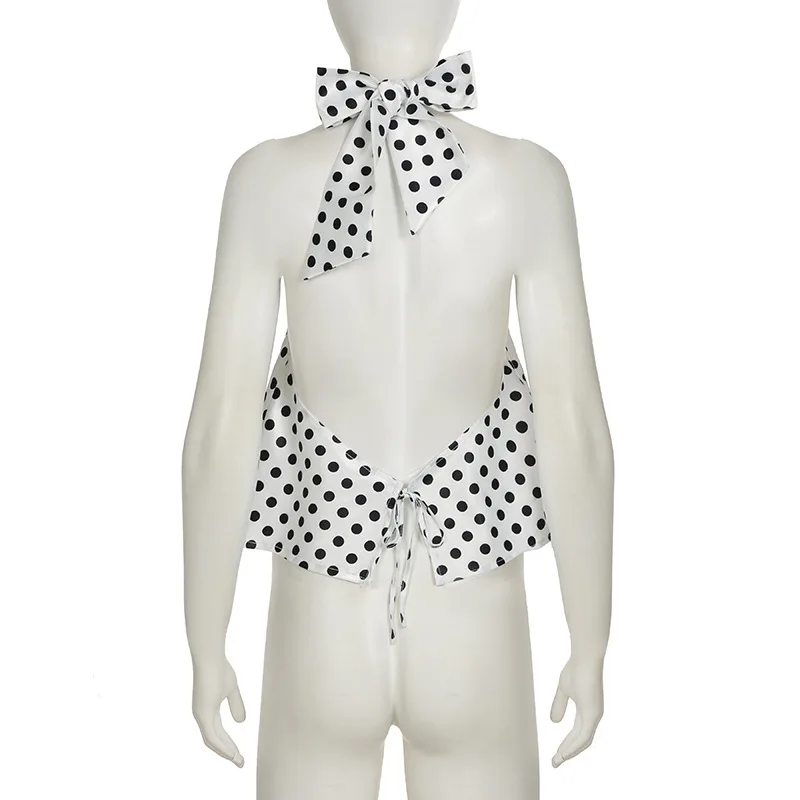 Vintage Polka Dot Tank Top Sexy Hanging Neck Contrast Bow Ribbon Backless Top Fashion Party Looks Backless Tops Women