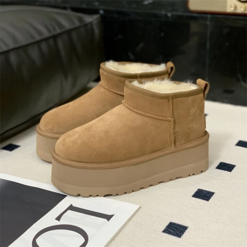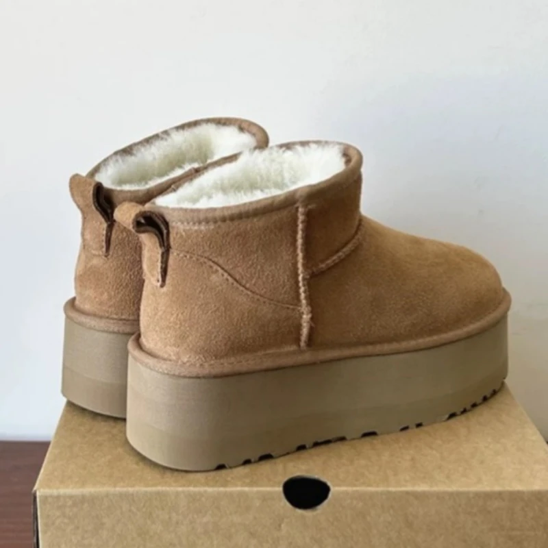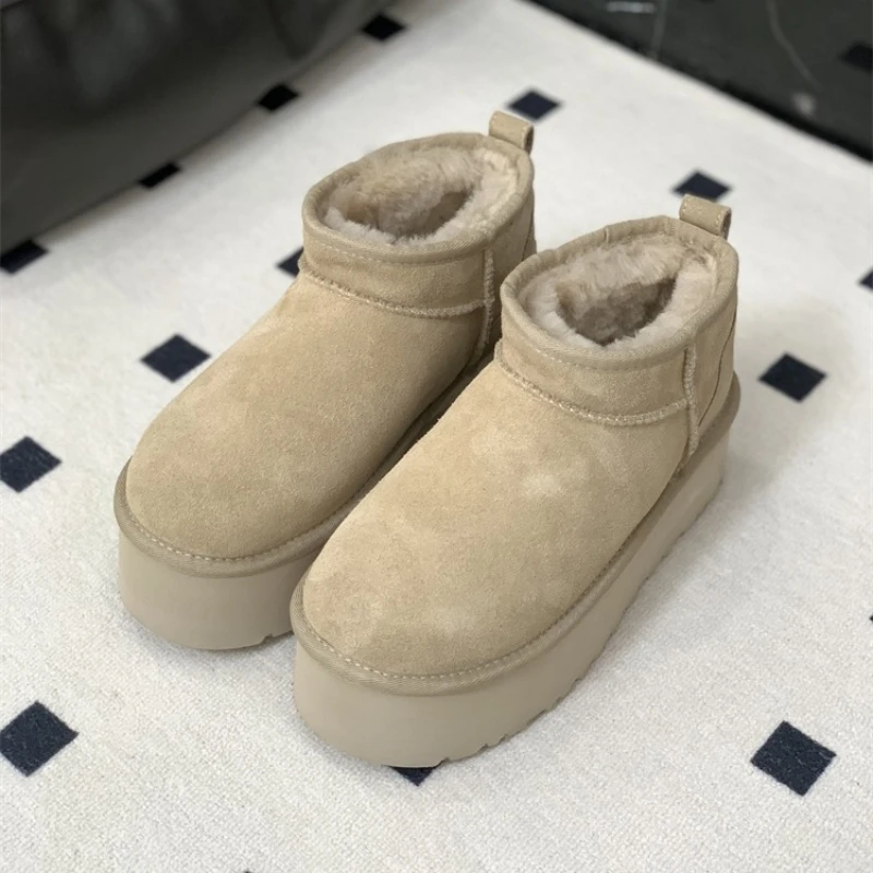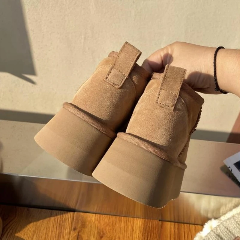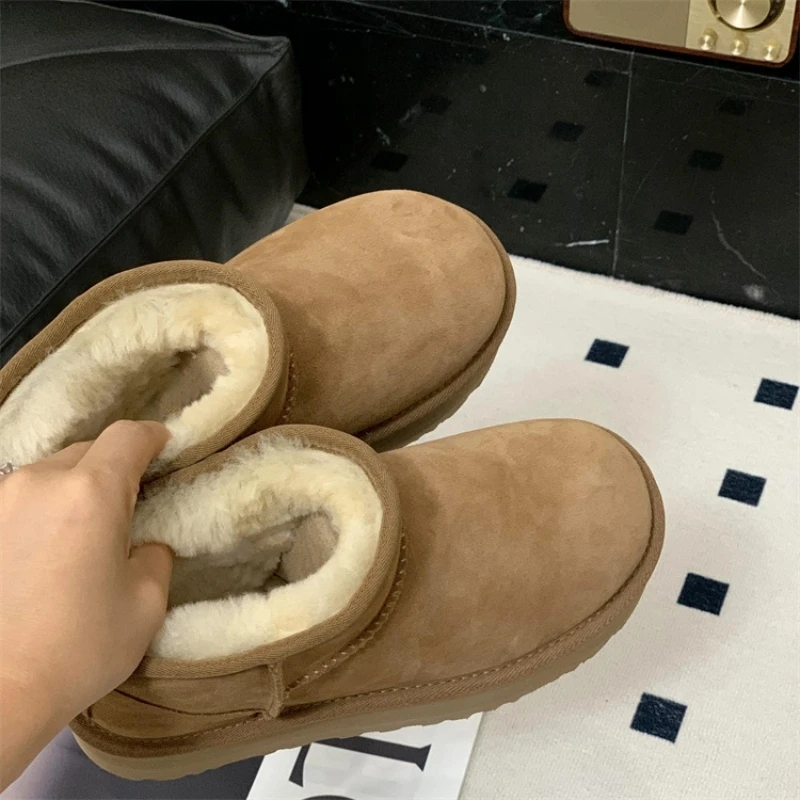 Winter Women Ultra Mini Platform Snow Boots New Ladies Wool Leather Comfort Boot Female Fur Thick Bottom Shoes Men Warm Slippers