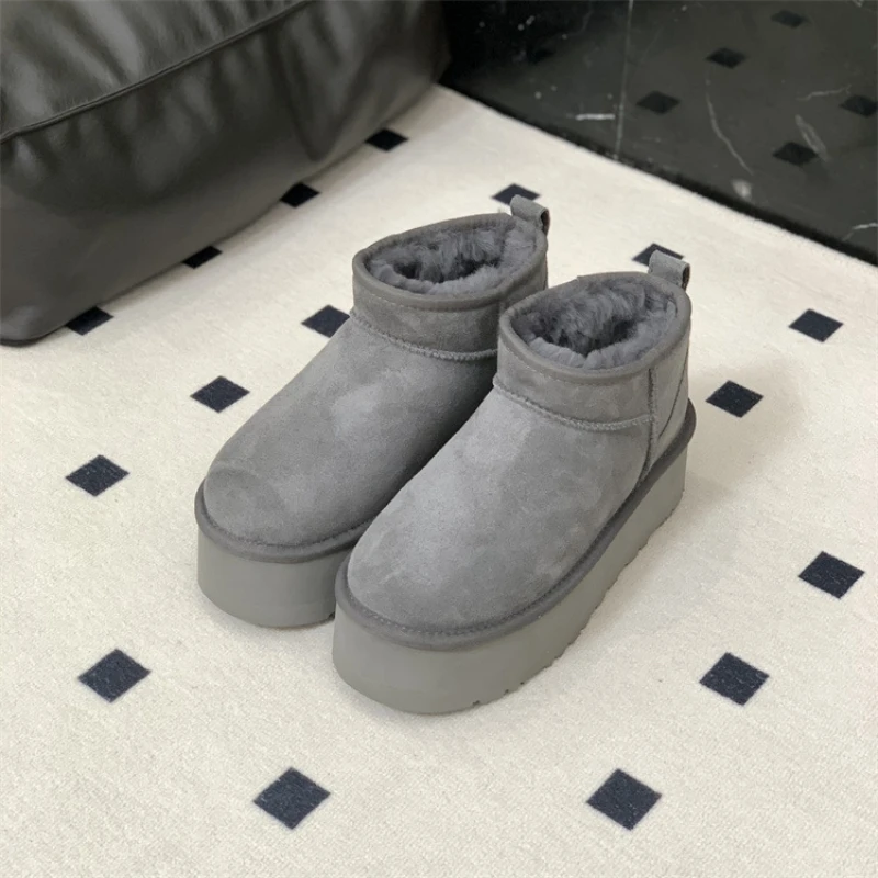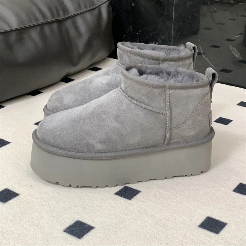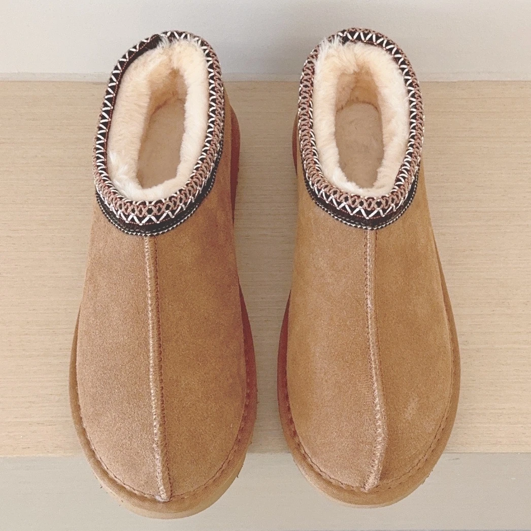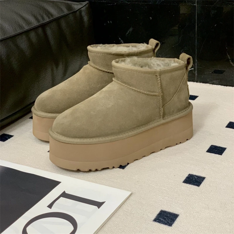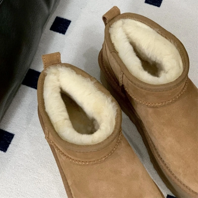 Winter Women Ultra Mini Platform Snow Boots New Ladies Wool Leather Comfort Boot Female Fur Thick Bottom Shoes Men Warm Slippers
