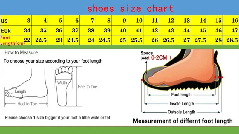 1.Measurements are the maximum size,please allow error about ± 5MM.Compare the size chart with your feet length carefully before ordering.