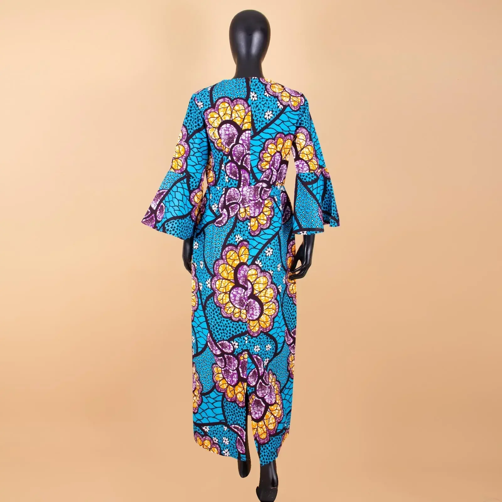Women`s African Dresses Dashiki Outfits Print Bodycon Long Maxi Dress V Neck Flare Sleeve Party Wedding AFRIPRIDE A1925048